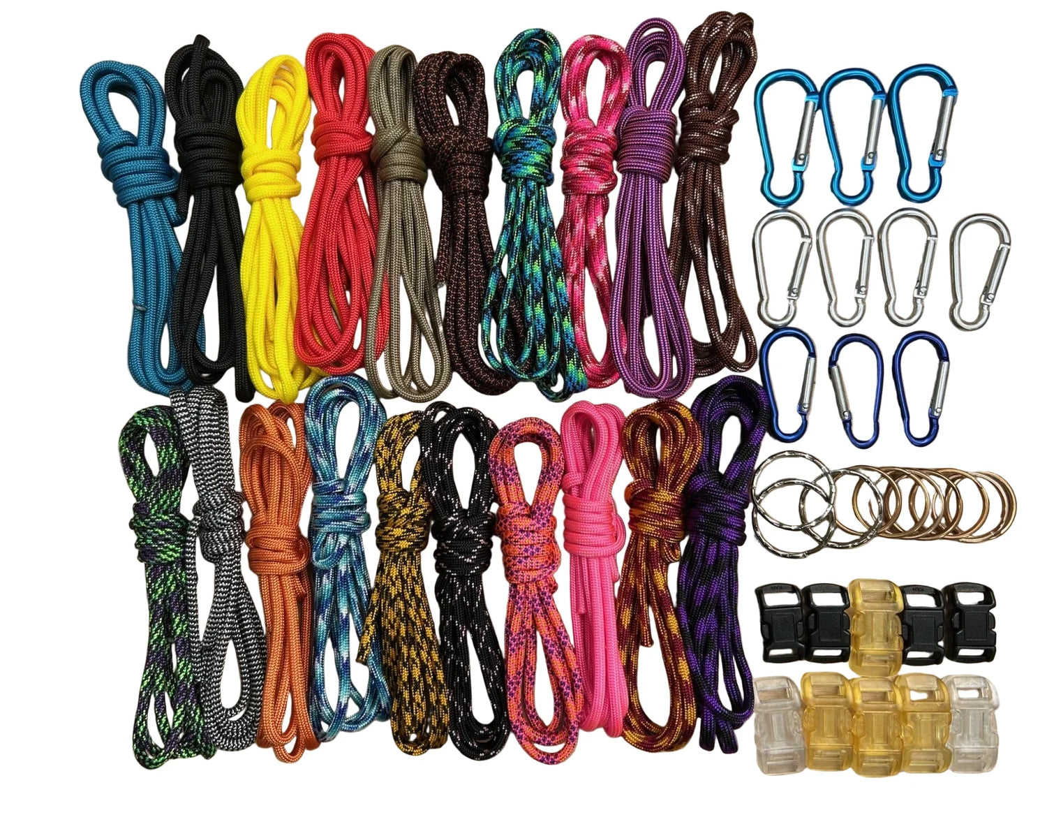 These ready-to-run kits include pre-cut paracord, buckles or keyrings, and step-by-step instructions. Optional video tutorials available.
