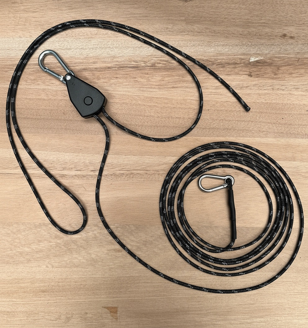 The integrated pulley and carabiner system means perfect tension every time — no knots, no tangles, no frustration.